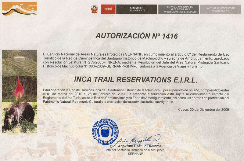 Nous sommes membre de l'IATA, l'International Air Transport Association (IATA # 91500802) et de remplir le Pré requis financier de cette institution mondialement reconnu. Nous sommes aussi membre de l'ASTA, abréviation de la Société Américaine des Agences de Voyage (ASTA # 900181553). C'est la plus importante association au monde des professionnels de Voyage fondée en 1930. Notre entreprise aux États-Unis est exploitée par notre corporation américaine appelée Dual Source Enterprises INC avec le nom de Chemin des Incas, il est enregistré comme un «California Seller of Travel » avec enregistrement CST # 2085372-40. |